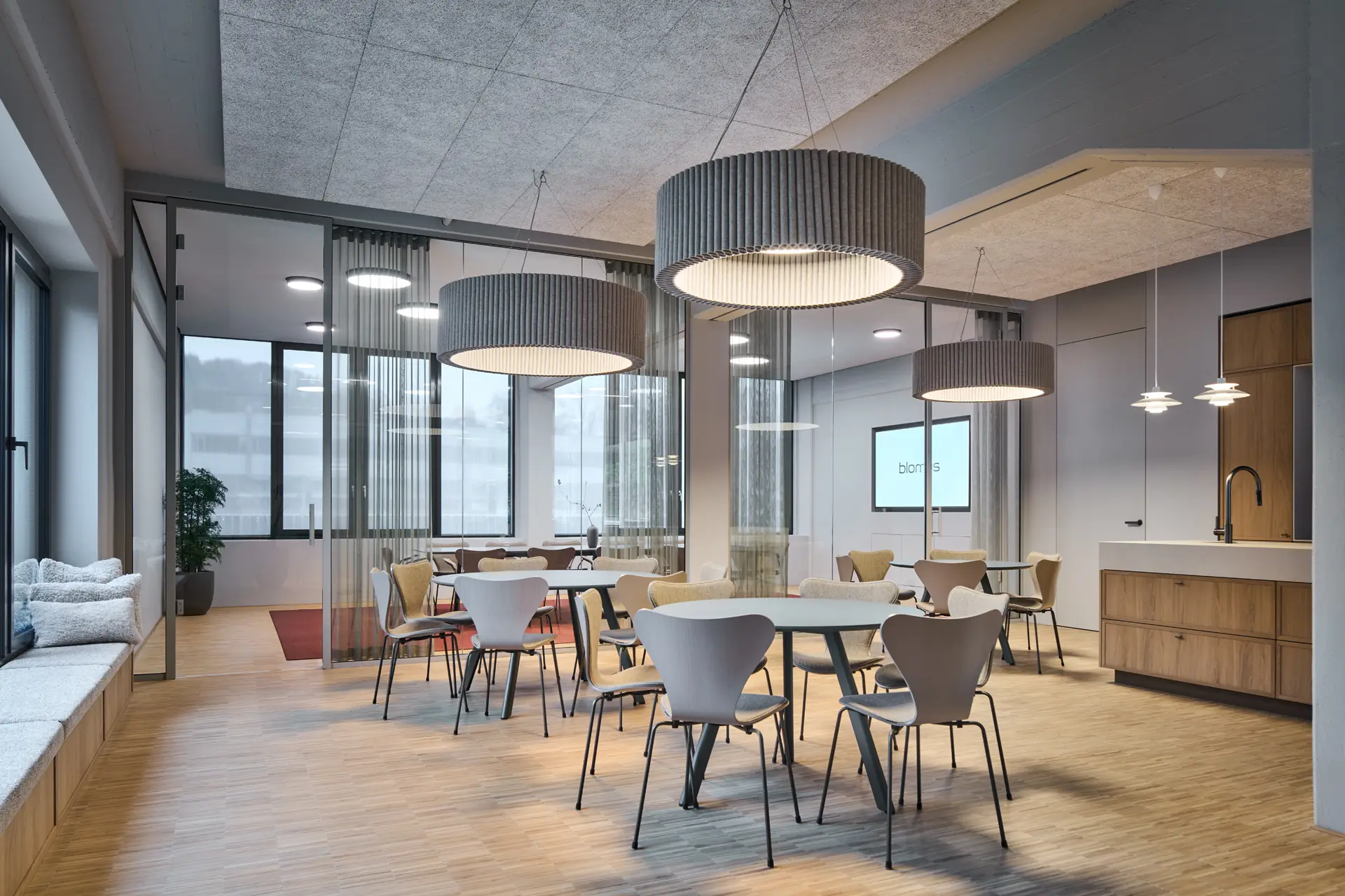 Im neuen blomus Headquarter in Sundern treffen industrielle Architektur und zeitgemäße Arbeitswelten aufeinander. Aus der Sanierung eines ehemaligen Fabrikgebäudes und der Ergänzung durch einen Neubau entstand eine offene, kommunikative Bürolandschaft mit integrierten Showroom-Flächen für die designaffinen Produkte von blomus.